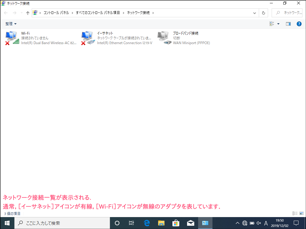 - ネットワーク接続一覧が表示されます。